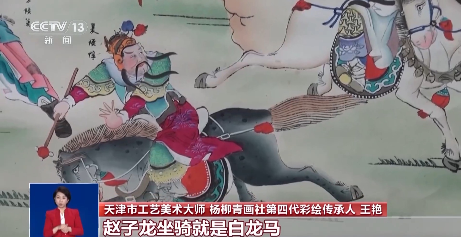 天津市工艺好意思术大众 杨柳青画社第四代彩绘传承东说念主 王艳:主角东说念主物骑的马一般都是纯色的,非主角东说念主物的坐骑会用杂色马,赵子龙的坐骑便是白龙马,关公的坐骑是赤兔马,白龙马应该是白马身和白马毛,但如若作为主要位置出现的话,在画面脸色搭配中会显得相比弱,玄色是长精神的这么一种用法,是以画师们会将鬃毛和马尾主不雅创作成玄色。