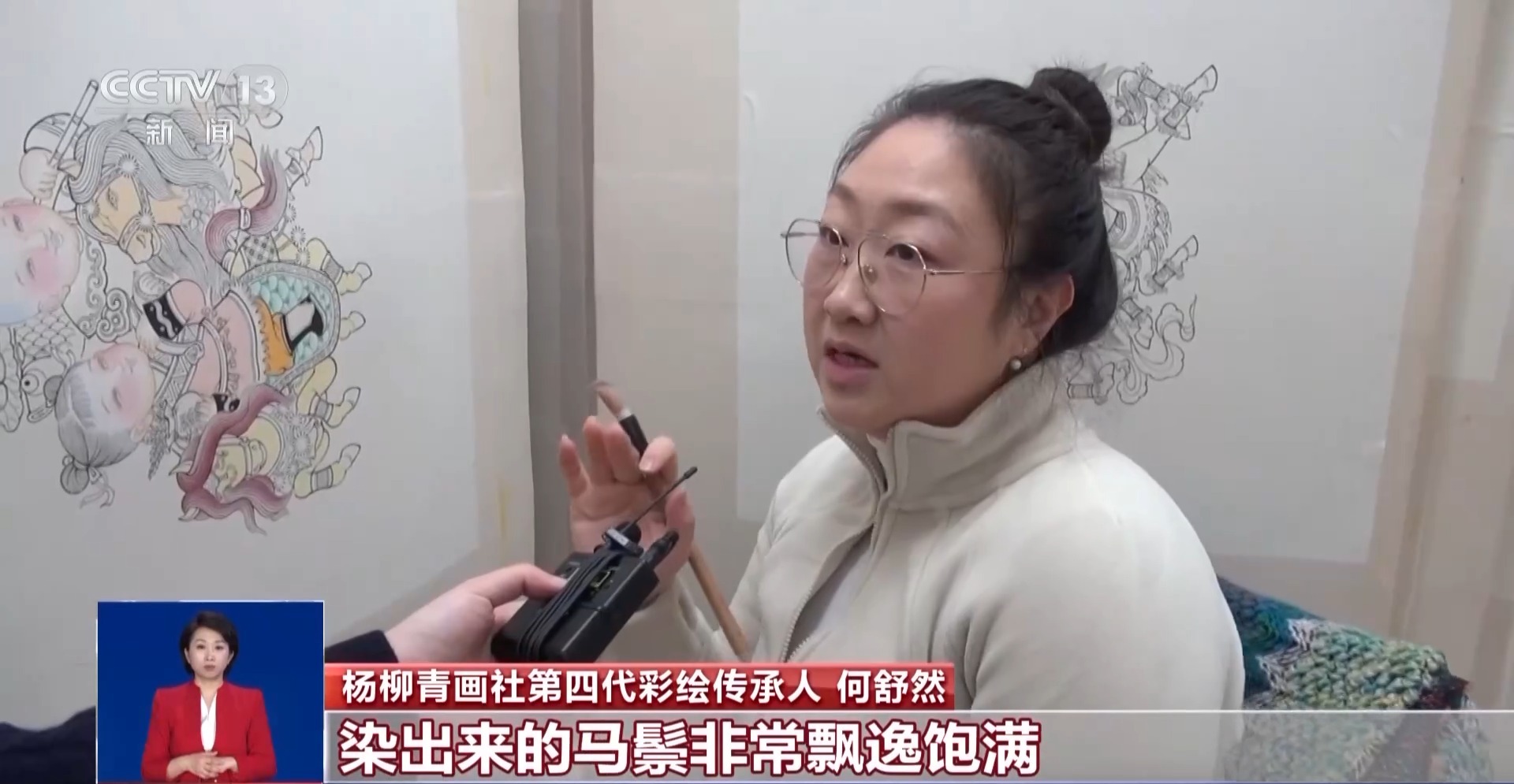 杨柳青画社第四代彩绘传承东说念主 何舒然:一笔双色来掌捏画面晕染脸色的深和浅,在这边就会有些深,水笔的方位会有一个过渡,运转浅下来了,染出来的马鬃十分洒脱鼓胀,让马的扫数这个词造型十分灵动。