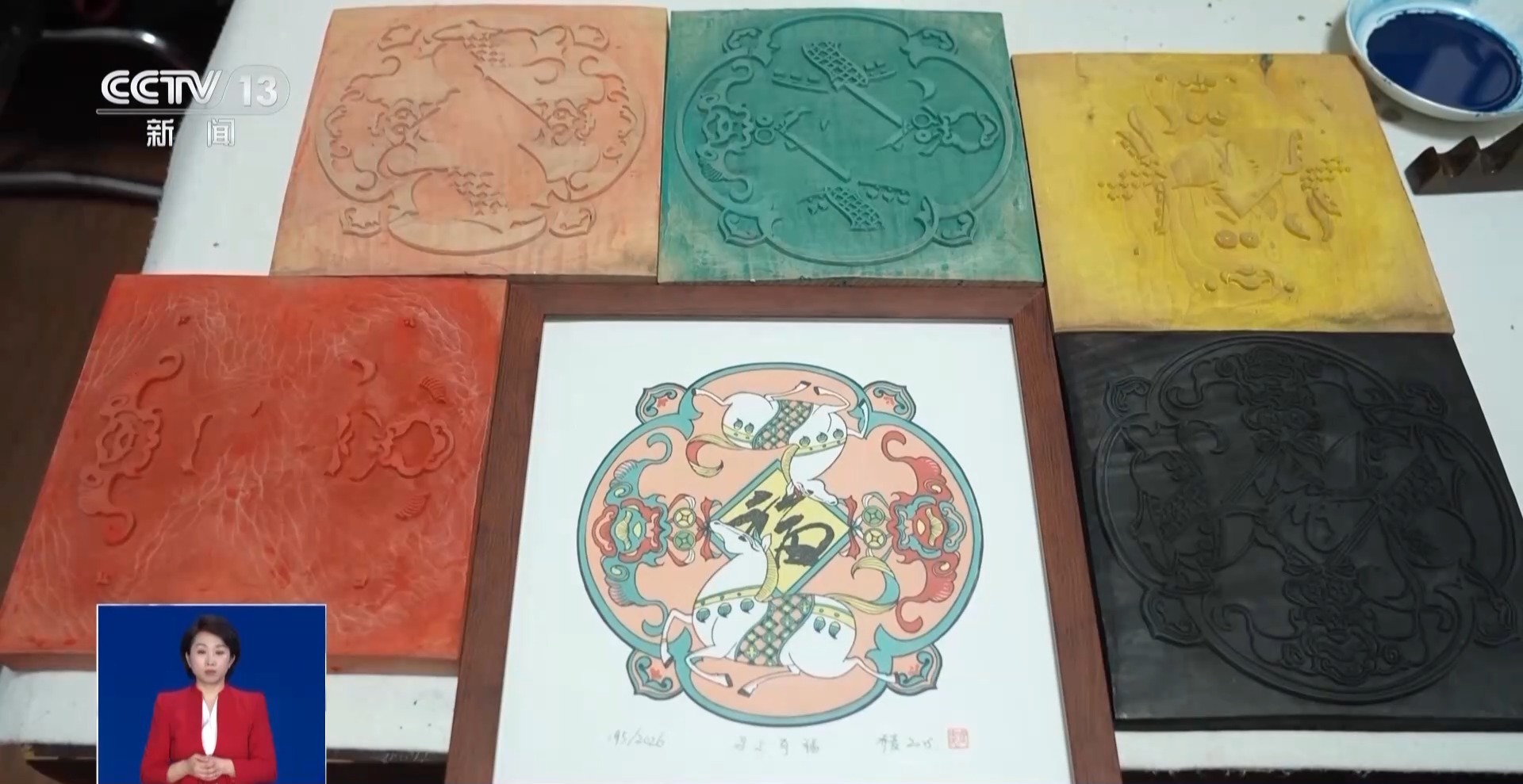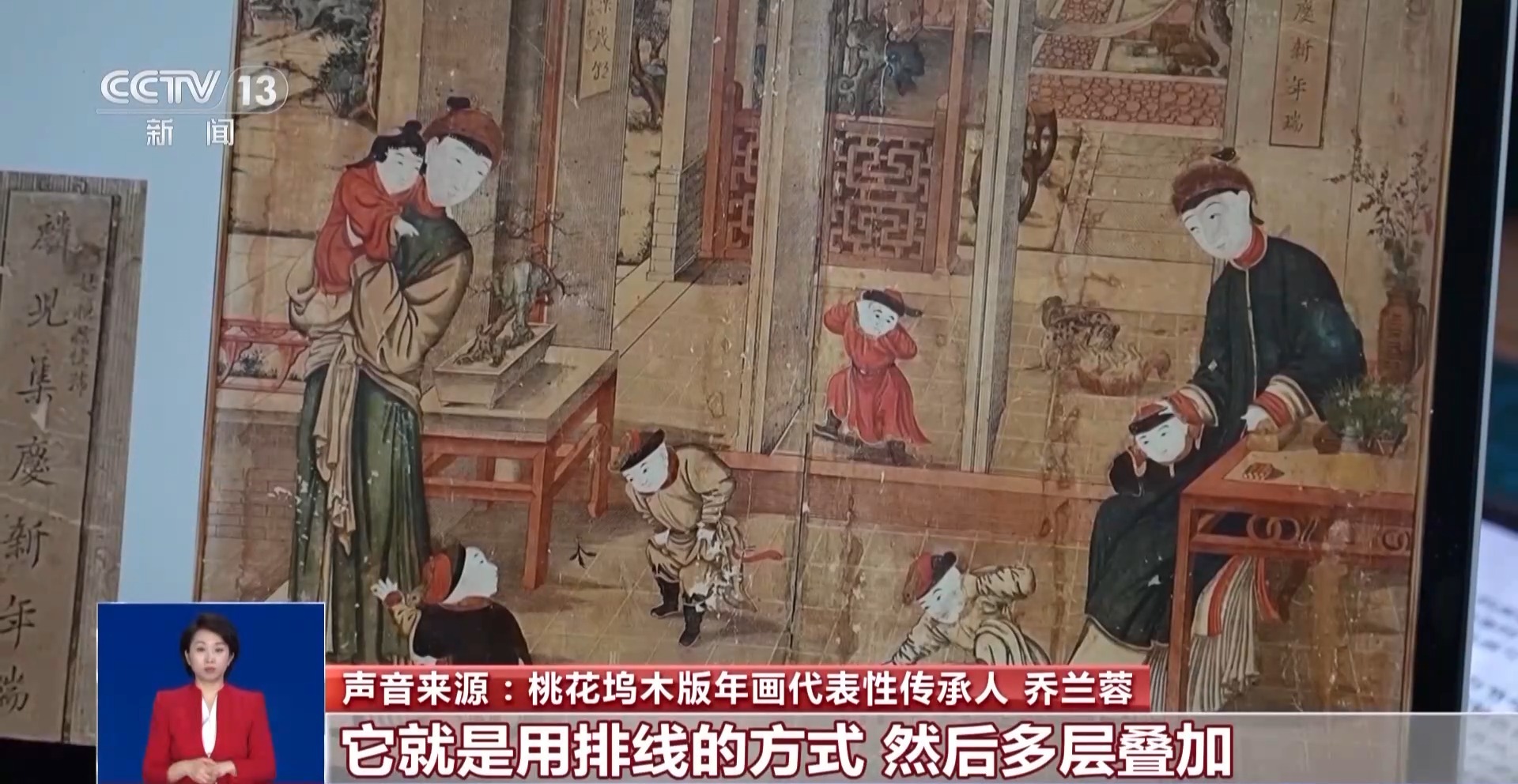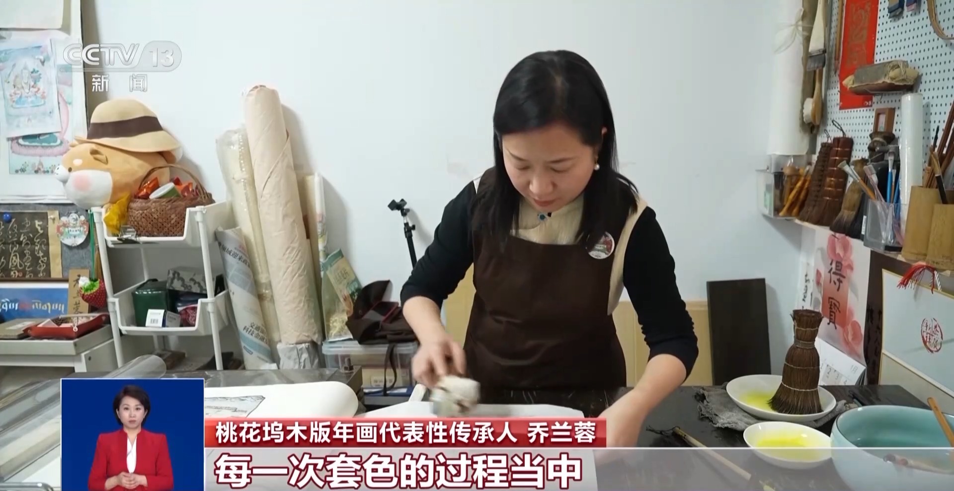 桃花坞木版年画代表性传承东说念主 乔兰蓉:脸色是通过版刻刷印的神气层层印出来的,七块版,每一块版要套印三次,印一遍是够不上色调富有度的,每一次套色的经过当中,都要确保精确无误。