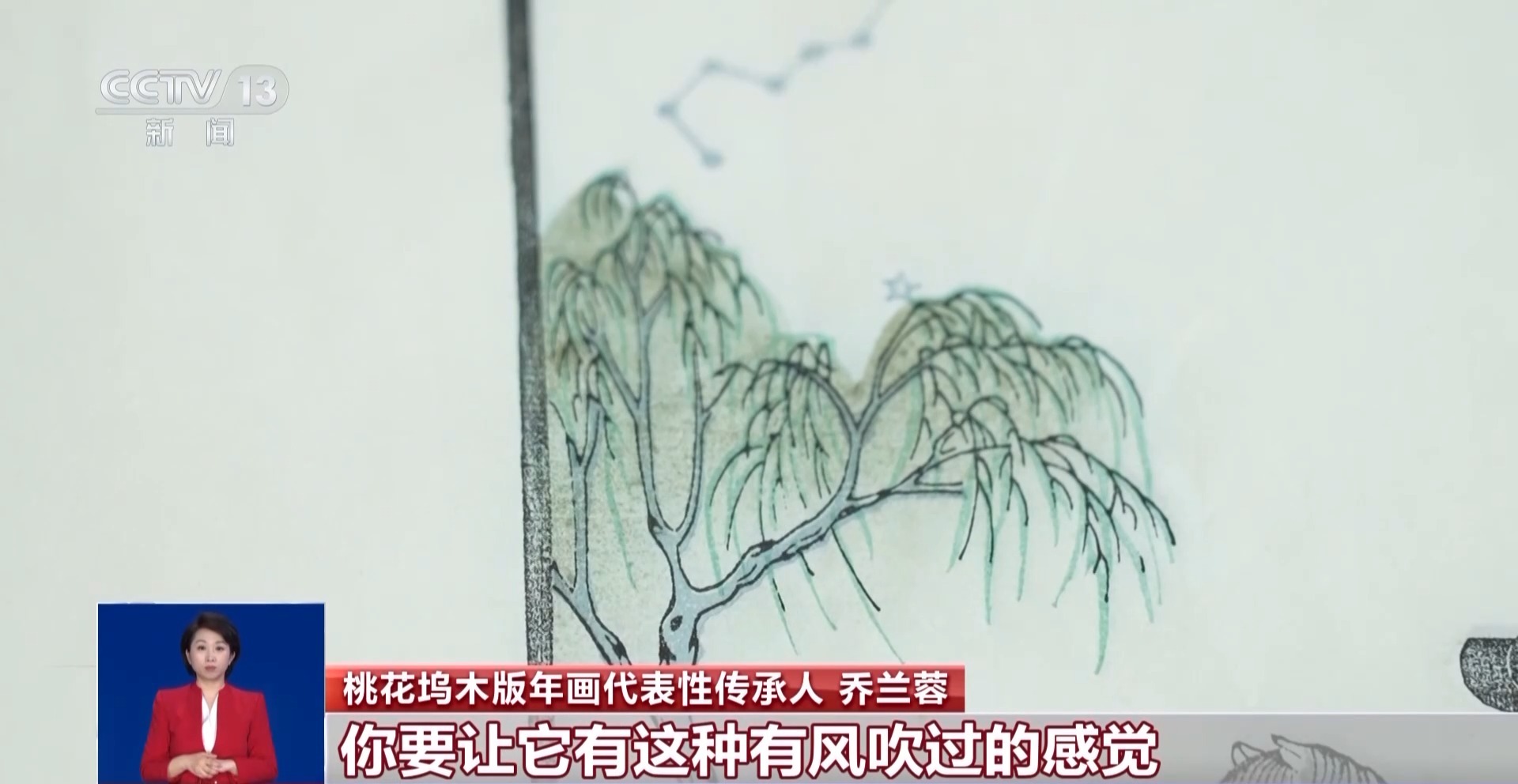 桃花坞木版年画代表性传承东说念主 乔兰蓉:这是古代文东说念主骑马踏青的一个局部,比如柳树,要让它有风吹过的嗅觉,必须有浅深的变化、前后的变化,细细试吃,会发现它越看越有滋味,工艺上这种追求极致又不显山不露珠的处世玄学。