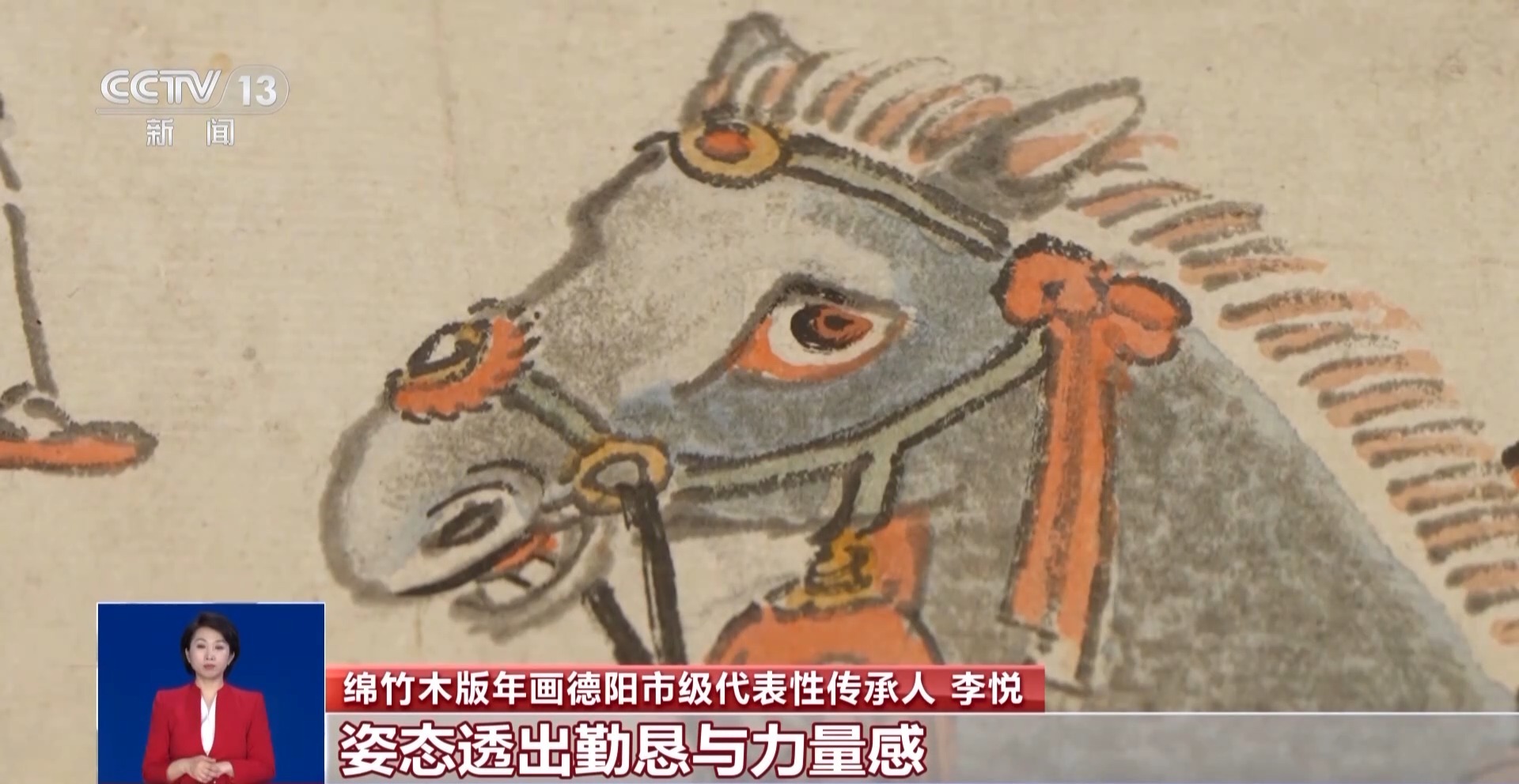 绵竹木版年画德阳市级代表性传承东说念主 李悦:马作为舞队的一部分,常装束喜庆,行动轻快,与舞者节律一致。画中也有作为拉车、驮货的马,姿态透出悉力与力量感,也响应岁时节庆中估客生存的确实面庞。