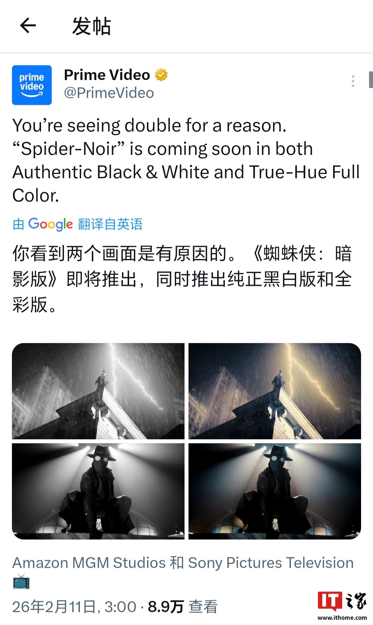 IT之家 2 月 12 日音书,由尼古拉斯 · 凯奇主演的漫威《阴影蜘蛛侠》真东谈主剧集公开一组全新海报,新预报未来发布。