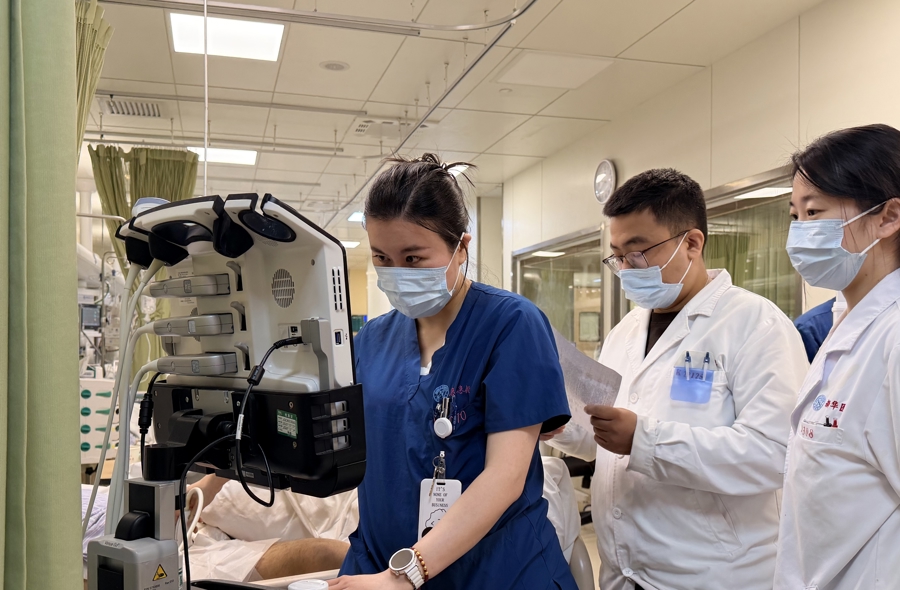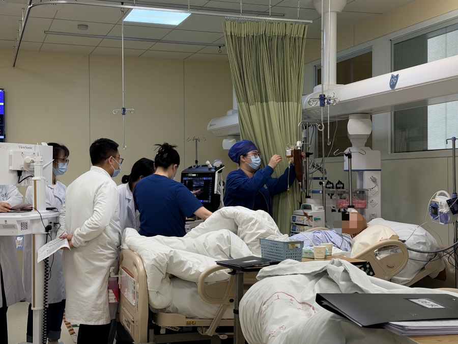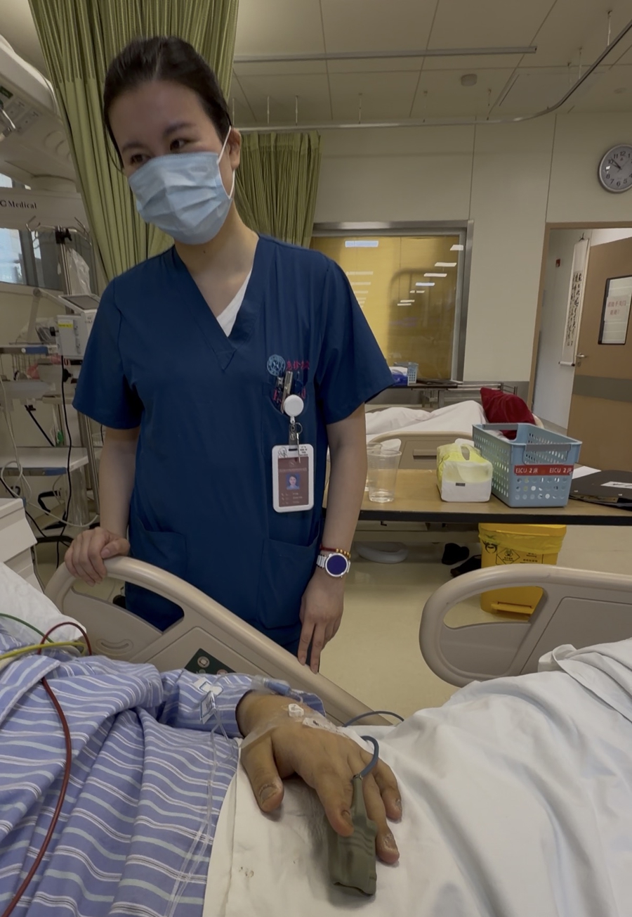 李雯婕在急性胰腺炎患者的床旁