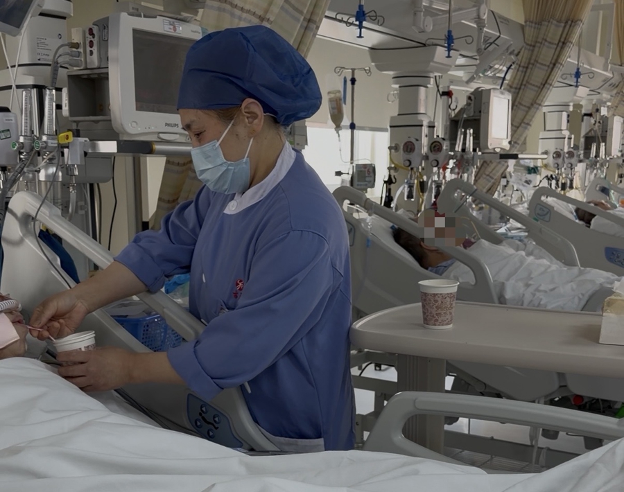 在EICU,还有不常出当今镜头里的东谈主——防守员。54岁的潘小云是江苏东谈主,在病院使命这些年,10年只回家过2次。从小除夕到当今,她一天没休,天天守在EICU。7点到19点的12小时白班里,她给患者喂饭、擦身、翻身、科罚大小便、安抚神志……监护室实施无家属陪护,患者的生涯起居,全靠防守员的一敌手。“想家就跟家东谈主视频一下。”潘小云笑着说,“这里的病东谈主更离不开东谈主。”