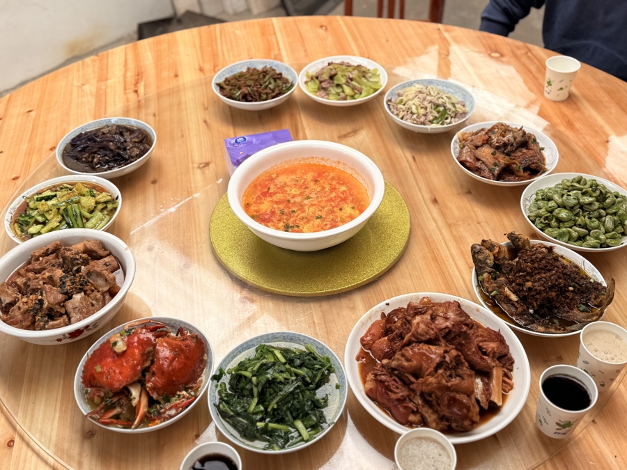 一桌色面“土土的”除夕饭。沈想怡 摄