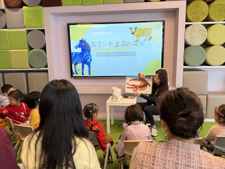 上海少年儿童藏书楼长风新馆,亲子家庭插足马主题故事会。